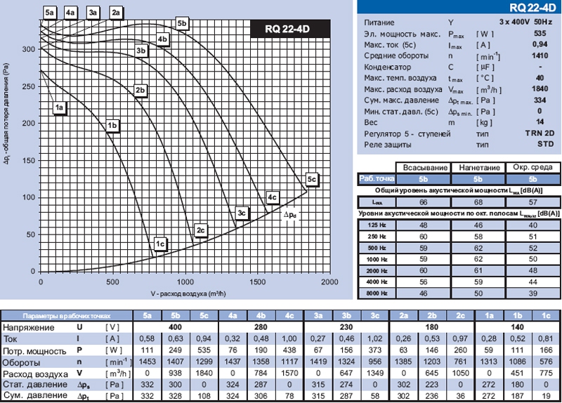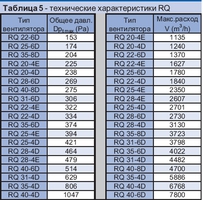 Таблица №5 Характеристики вентиляторов RQ