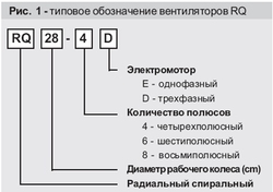 Типовое обозначение спиральных вентиляторов RQ в проектах и заказах специфицирует ключ (рис. 1).