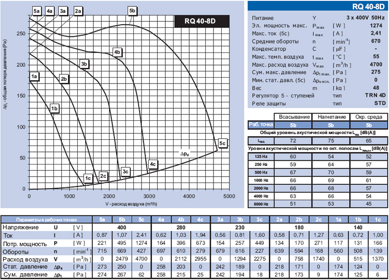 Таблица №5 Характеристики вентиляторов RQ